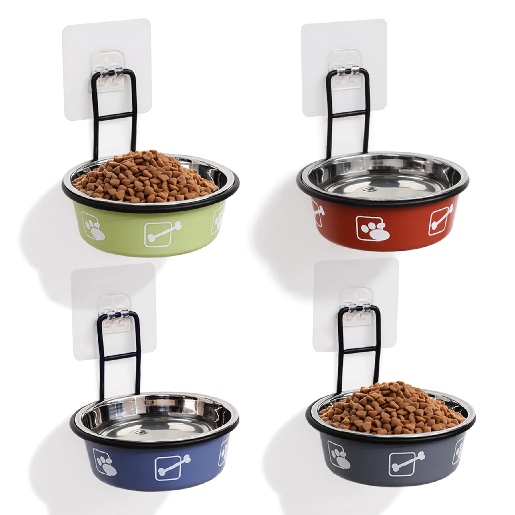 TRUNDISAN 4PCS Multi-Color Raised Cat Bowls Wall Mounted Cat Food Dish Elevated Cat Food and Water Bowls Stainless Steel Hanging Pet Bowls with Stand Nonslip Pet Feeding Bowls